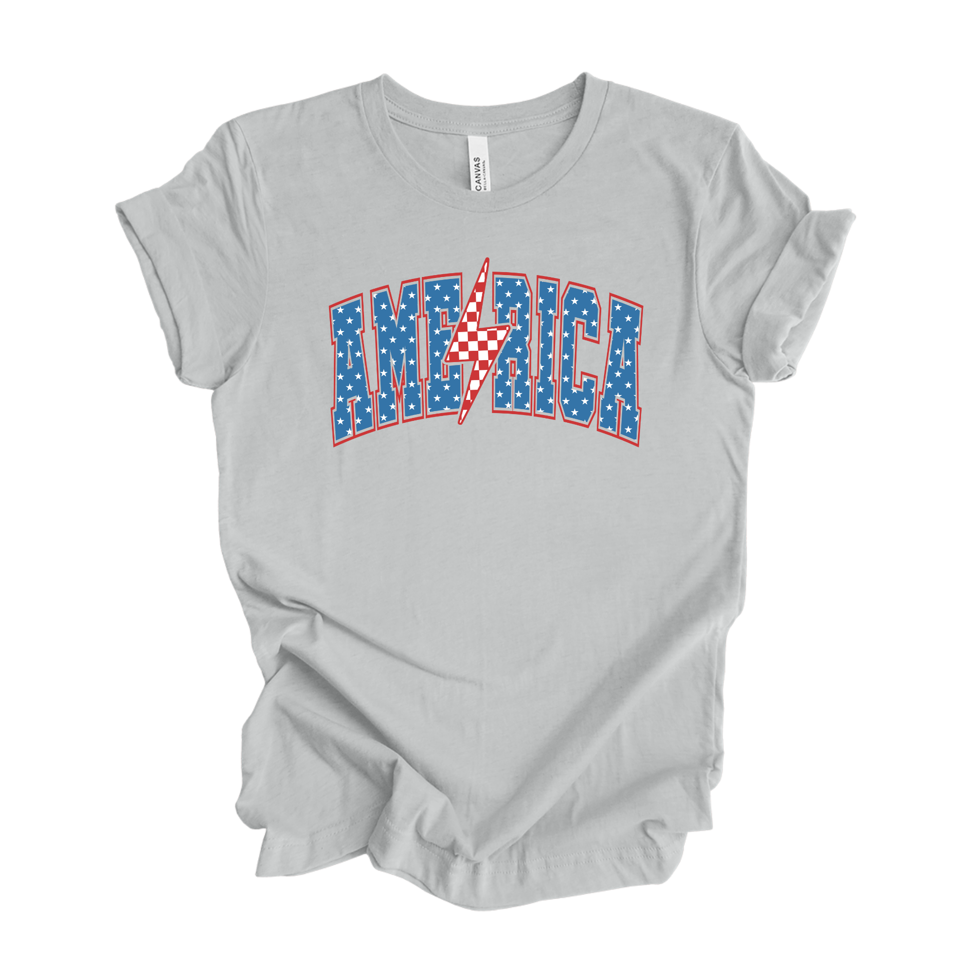 America | Red | White | Blue | Lightning | Unisex T-Shirt | Relaxed Fit | Classic Jersey Short Sleeve | 4th of July | Party | Graphic Tee | Gift