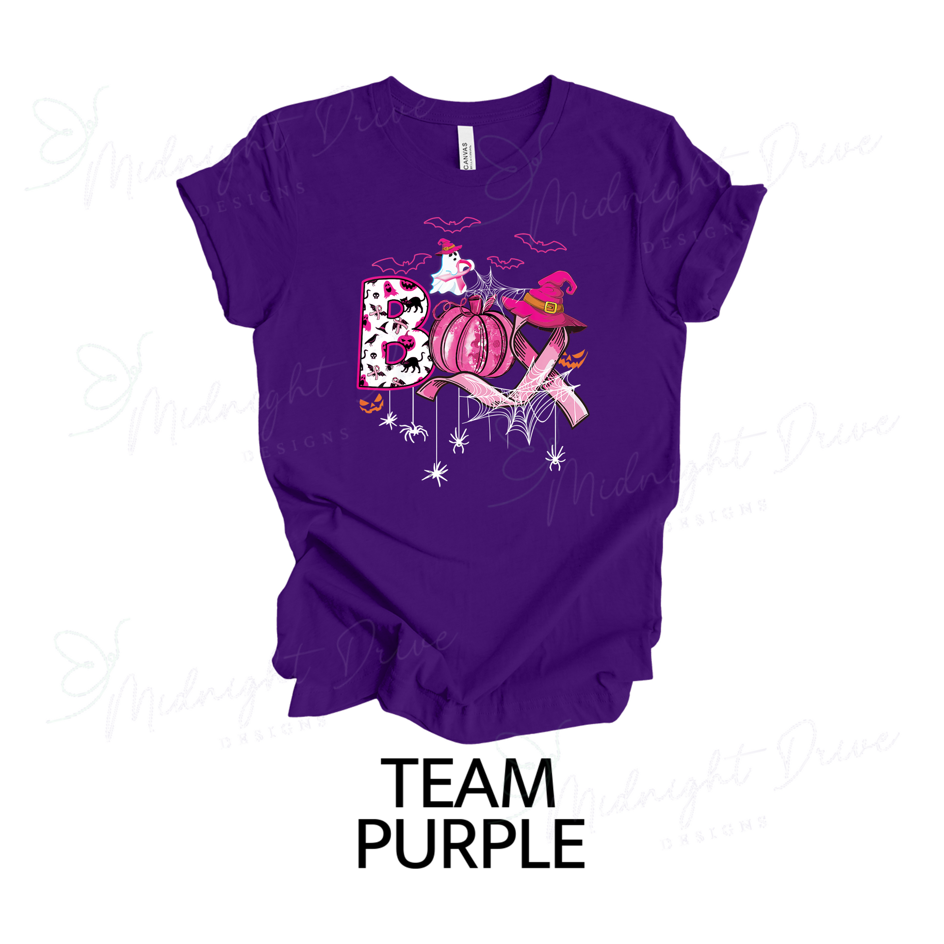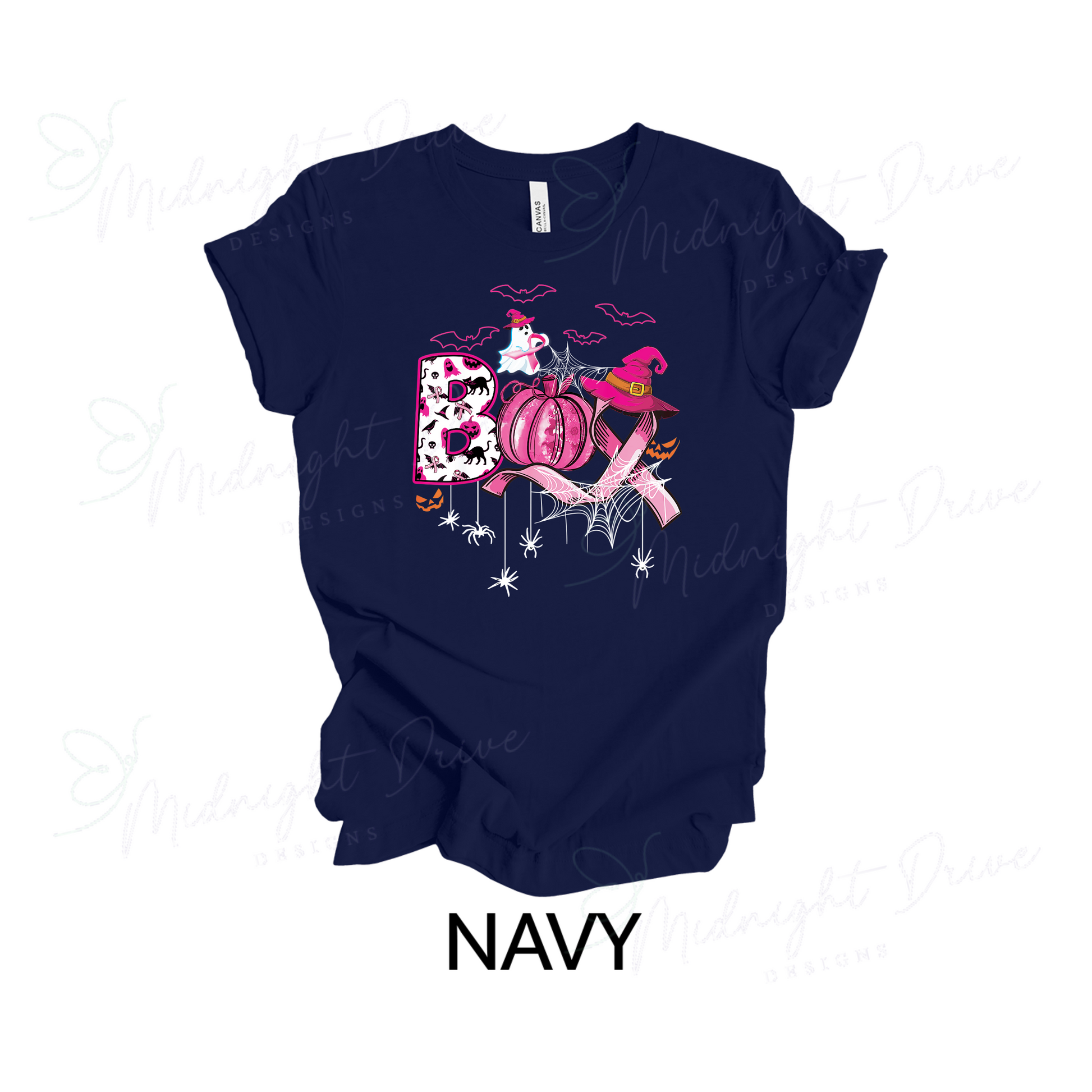 Boo | Breast Cancer Ribbon | Bella Canvas | Unisex T-Shirt | Relaxed Fit | Classic Jersey Short Sleeve | Women's Graphic Tee | Pink | Halloween | Gift