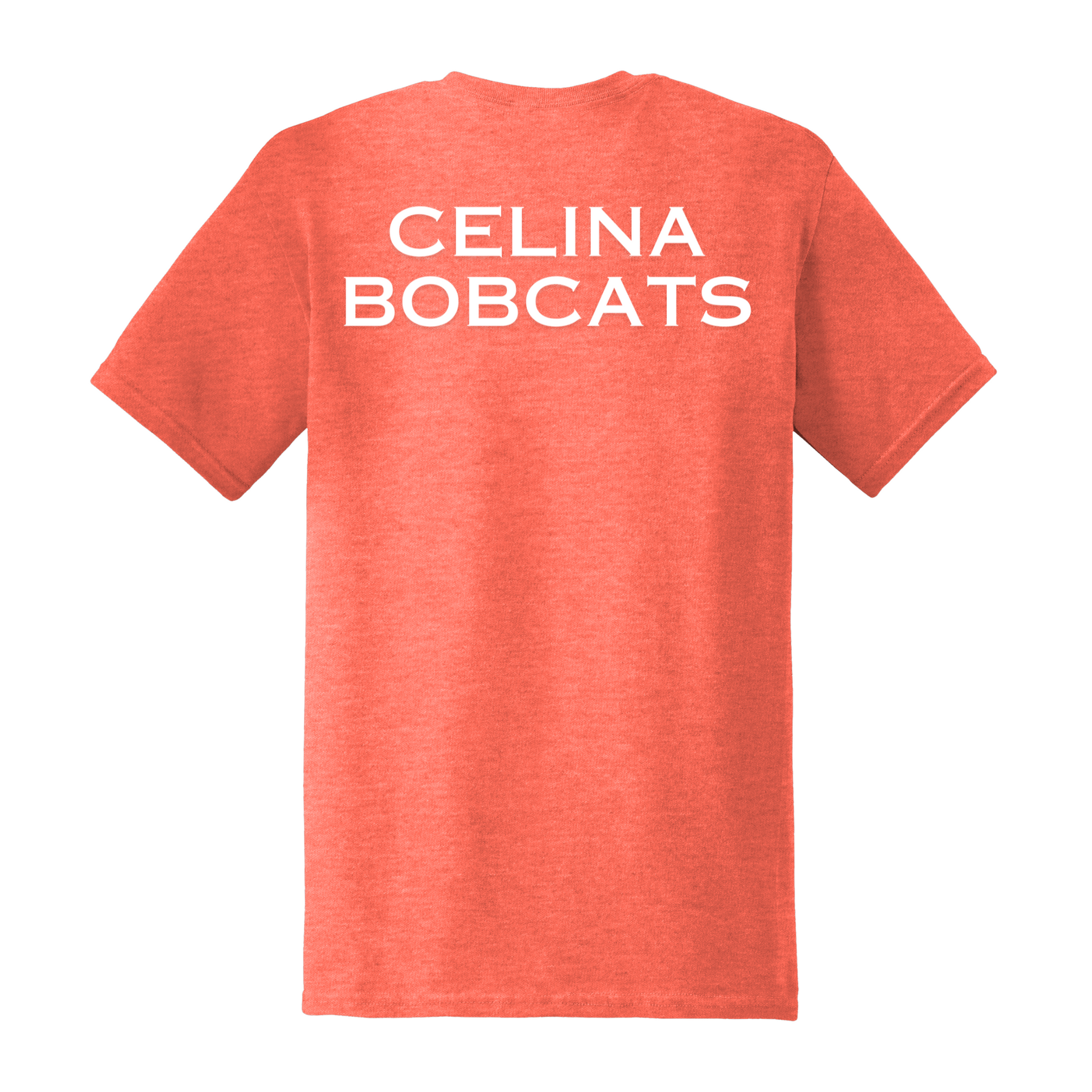 Celina Bobcats Paw T-Shirt | Heather Orange | Paw on Left Chest | Celina Bobcats on Back