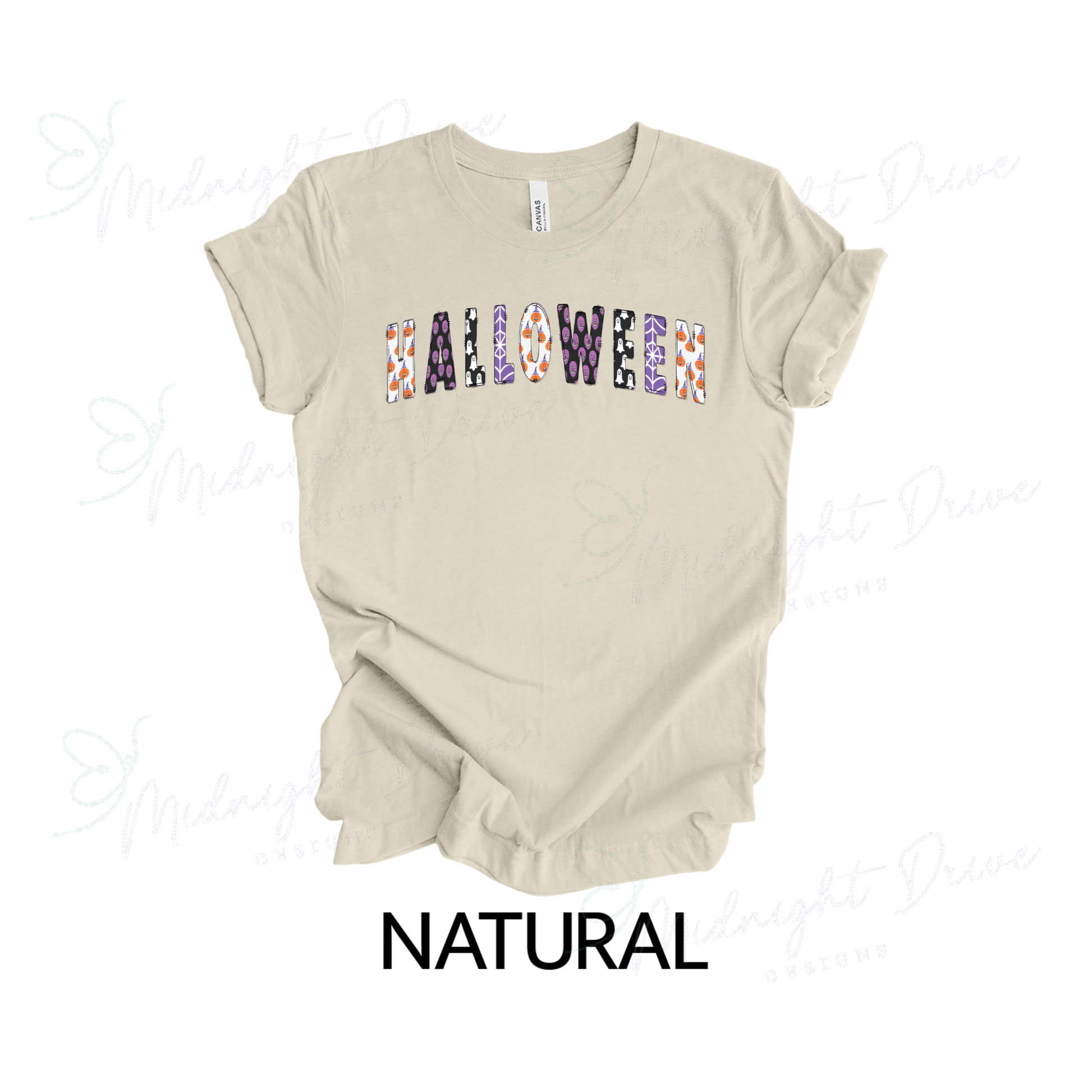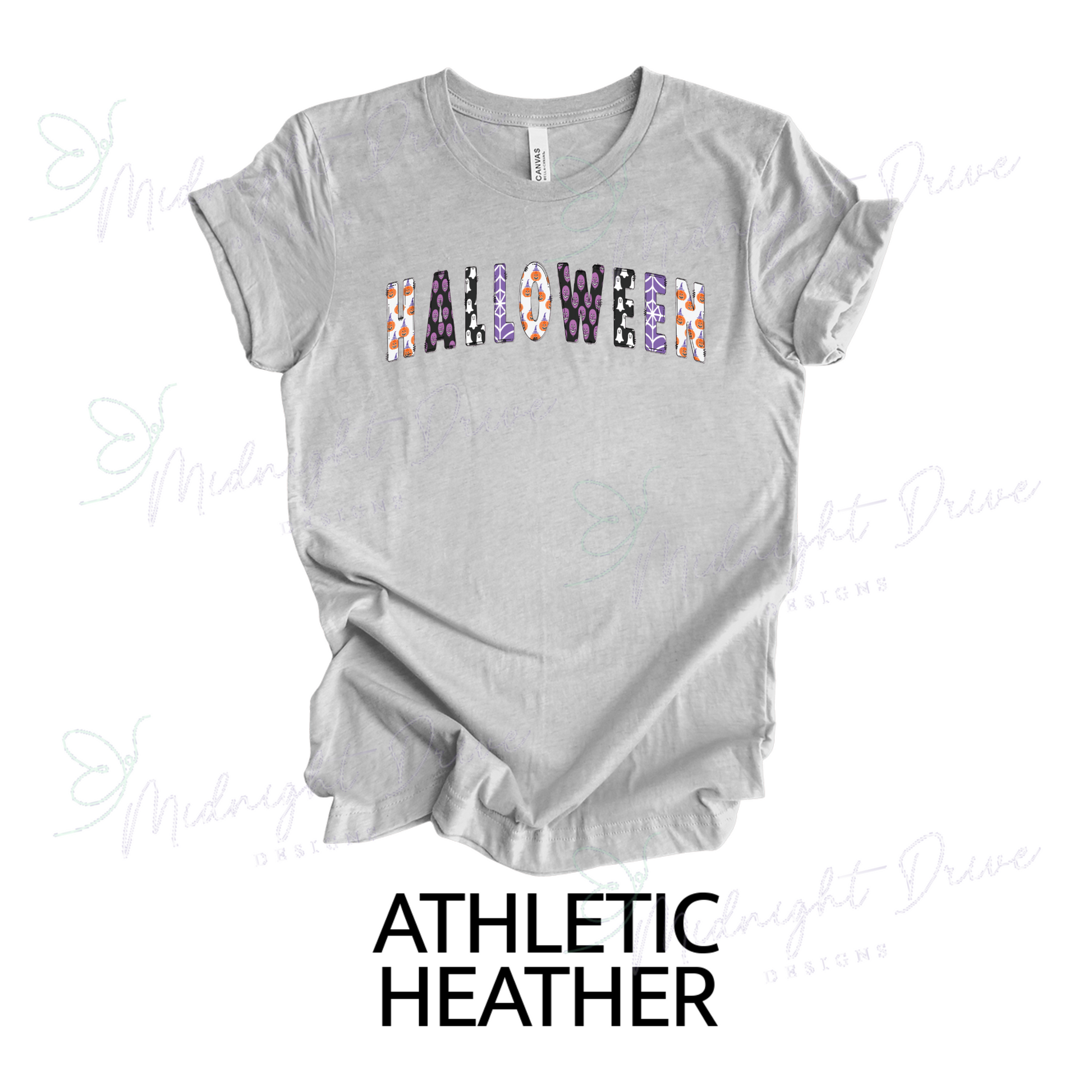 Halloween | Multi-Design Letters | Bella Canvas | Unisex T-Shirt | Relaxed Fit | Classic Jersey Short Sleeve | Women's Graphic Tee | Pumpkins | Spider Webs | Balloons | Ghosts | October | Gift