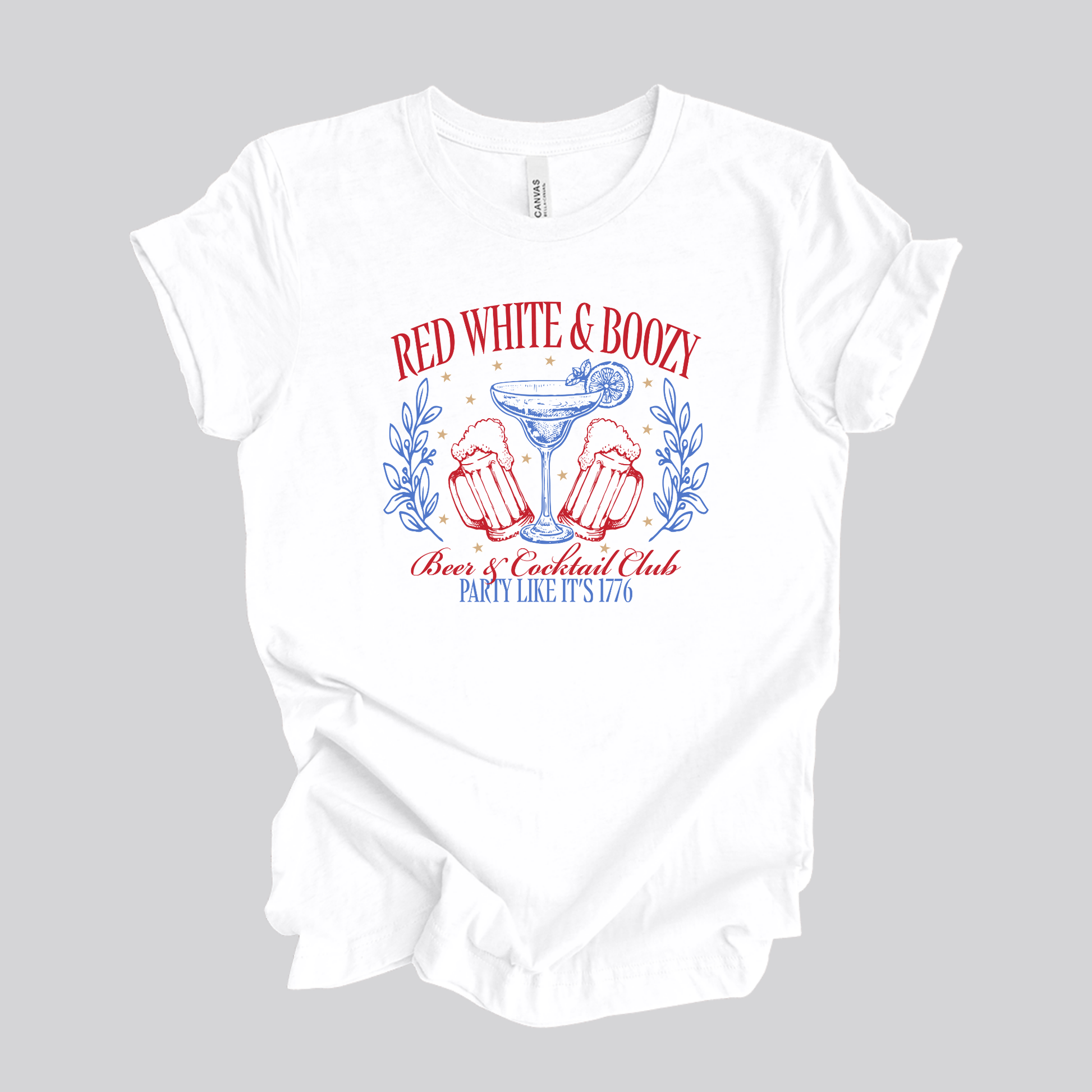 Red White & Boozy | Beer & Cocktail Club | White | Unisex T-Shirt | Relaxed Fit | Classic Jersey Short Sleeve | 4th of July | Party | Graphic Tee | Gift